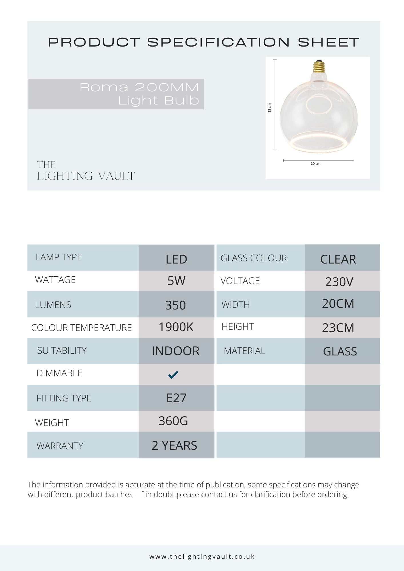 Roma 200MM XXL Globe Light Bulb Clear