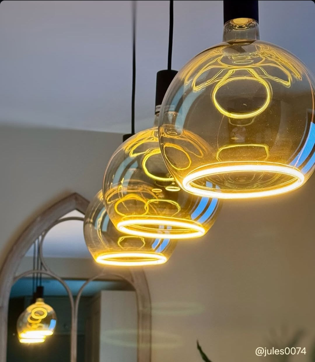 Our beautiful Roma extra large Globe style light bulbs create a stunning effect with a unique design in a warm white tone. The bottom of the light bulb is open with the filament sitting in a round open frame. These light bulbs create the perfect effect when you require a soft and subtle light. The globe shape looks perfect in round glass pendants or in exposed lamp holders. Other sizes and also a clear glass version are available in the Roma Globe collection.