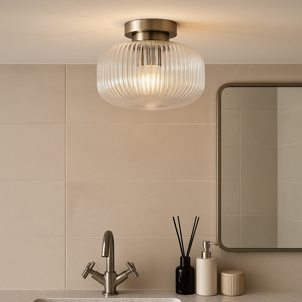 Elevate your bathroom with the Arlo Bathroom Semi-Flush, a refined ceiling light thoughtfully designed for low-ceiling environments. Crafted with a clear ribbed glass shade perched atop a sleek base, this fixture is available in elegant bronze, satin silver, or matte black finishes—each effortlessly enhancing modern and classic bathroom interiors alike Rated IP44 for reliable performance in bathroom environments. Built to deliver a soft, ambient glow while maintaining a minimalist silhouette, it’s a versatile and stylish choice for enhancing your space with functional elegance.