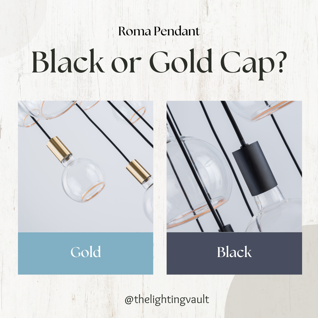 Select your cap finish and whether you’d like the clear or smoked Roma bulbs (or option with light only) to create the exact look you want.