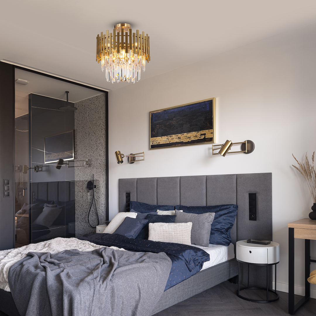 Bring a touch of timeless glamour to your home with the Turin Semi-Flush Gold. This striking light features a polished gold frame dressed with two tiers of faceted crystal shards that shimmer beautifully when lit. Perfectly sized for rooms with lower ceilings, it delivers all the drama of a chandelier without overwhelming the space. Whether styled in a bedroom, living room or hallway, the Turin creates a warm, inviting glow and a sense of understated luxury. Its blend of contemporary design and classic sparkle makes it a versatile piece that works effortlessly in both modern and traditional interiors.