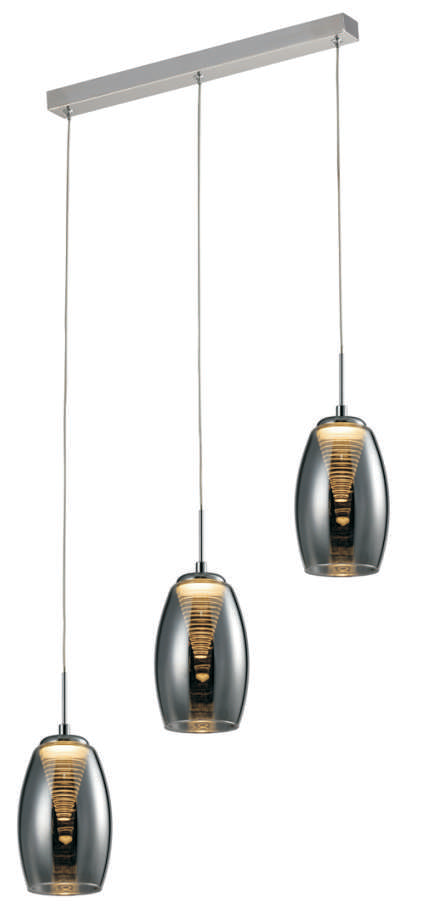 Elevate your kitchen or dining space with the Adelaide 3‑Light Pendant Bar, a refined fusion of minimalist design and luminous elegance. Featuring three sleek, clear or smoked glass shades that encase a sculpted inner pyramid, this pendant bar exudes modern sophistication at every turn. Each shade is intricately suspended from a high‑polished chrome plate, creating a striking visual symmetry that transforms any setting into an architectural focal point.