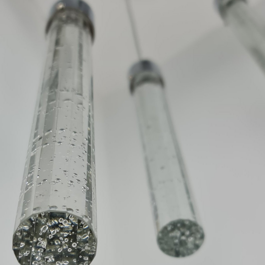 Crafted with long, solid glass rods embedded with “bubbles,” the Sydney Pendant Bar delivers sculptural elegance with functional brilliance. The high-polished chrome bar is adjustable during installation and spans a generous 84cm width—perfect for lighting kitchen islands or dining zones. Switch between 3000K warm or 4000K cool LED light to match your mood or décor. As part of our premium LED range, it comes with a 3‑year warranty, and each LED chip is replaceable—so you invest in beauty with lasting reliability.