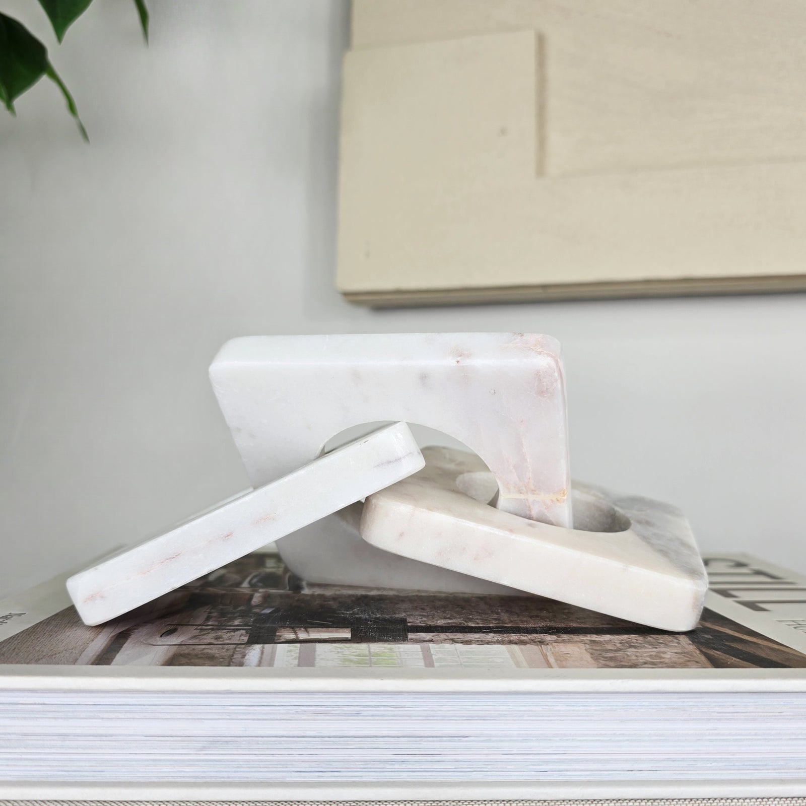 Unique square chain link decoration which is made from marble in a white finish and large links. This stunning home decoration will add a point of interest to your coffee table, bedside cabinet, or console table.