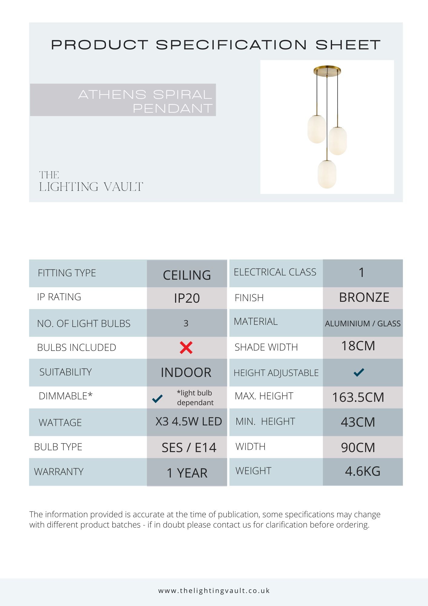 Athens 3-Light Bronze Spiral Pendant
