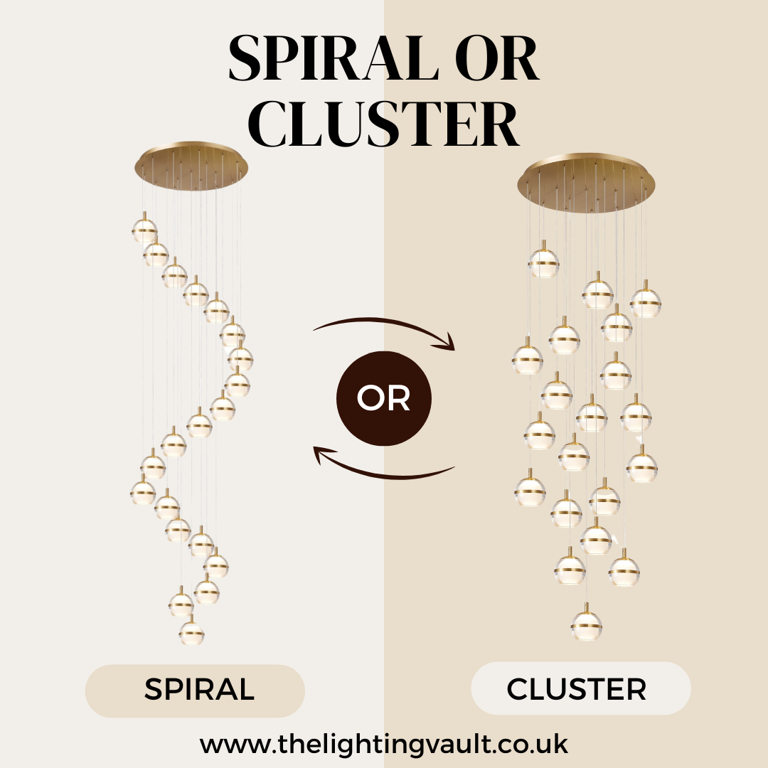 The Forbes XL 20-Light Spiral Pendant is the ultimate statement chandelier for luxury living. Measuring 68 cm wide with an adjustable drop of up to 5 meters, it is designed to transform stairwells, double-height entryways and grand living spaces into breathtaking showcases of light.