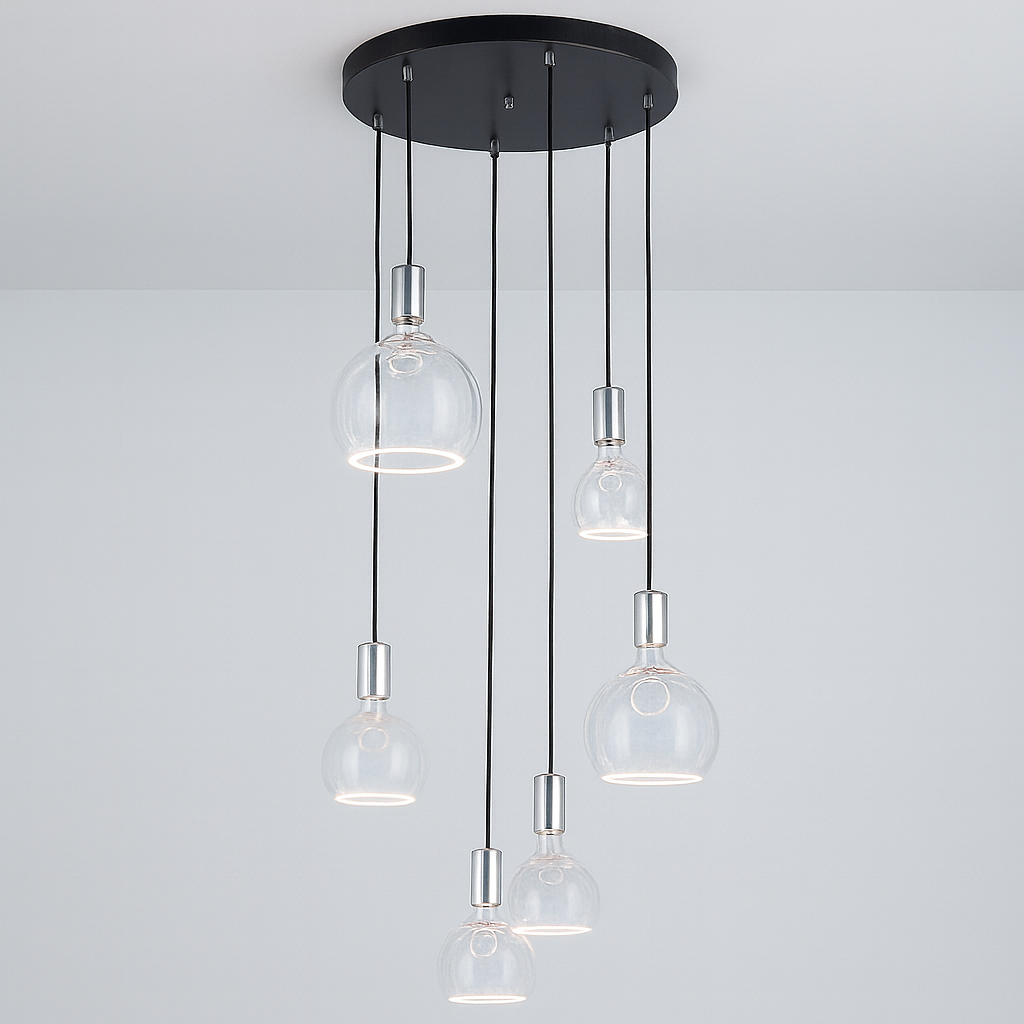 Crafted to fit standard E27 bulbs, these versatile designs work perfectly as single statement pendants or grouped together above a kitchen island, dining table, or hallway. With styles ranging from simple single pendants to dramatic multi-light clusters, the Roma Collection offers a luxurious yet modern aesthetic that complements both contemporary and classic interiors.